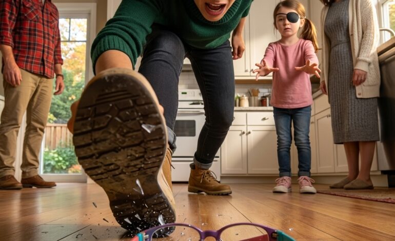 Sarah knelt to pick up glass. A shard cut her finger. A bright red drop landed on the wedding photo right over Julian’s smile. Tiffany watched, pleased, like she’d just won a game.